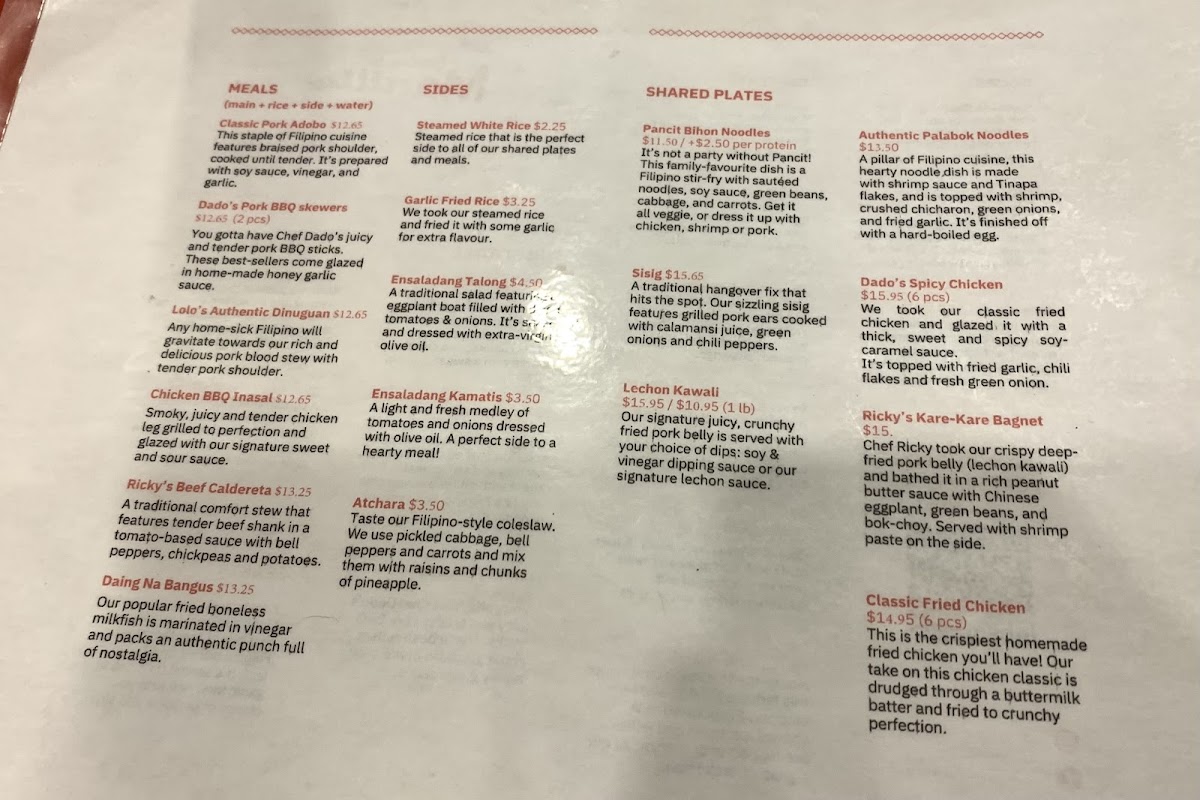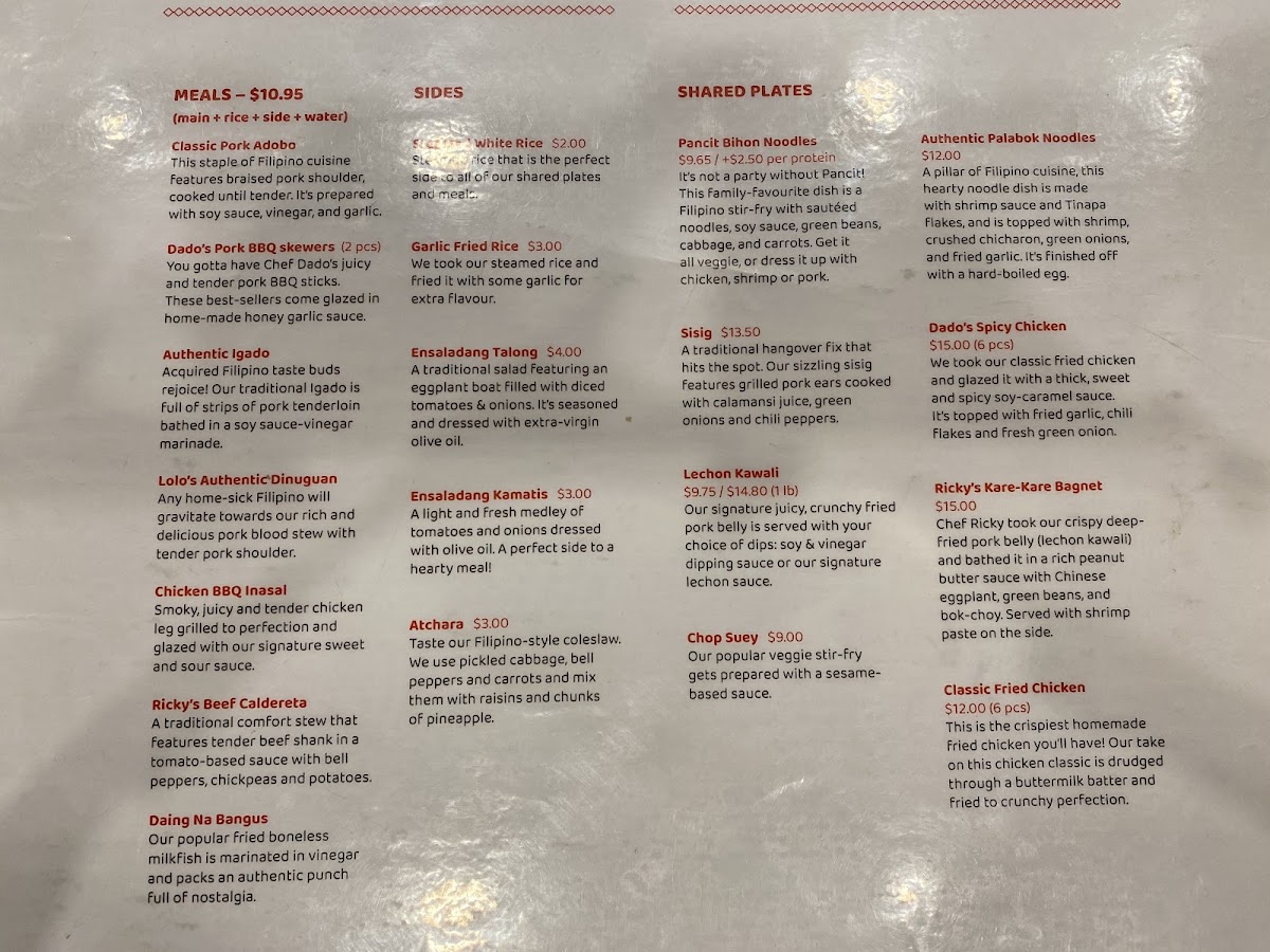 The menu at Cuisine De Manille offers a relaxed and inviting selection of traditional Filipino dishes that balance familiar comfort with vibrant flavors. It’s the kind of place where you can enjoy a casual lunch or a laid-back dinner, sharing plates that invite conversation and ease.