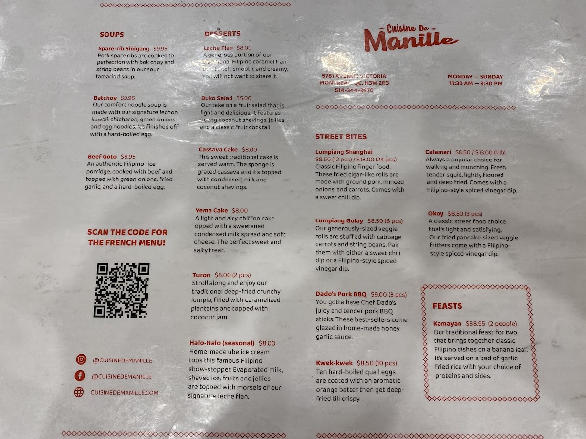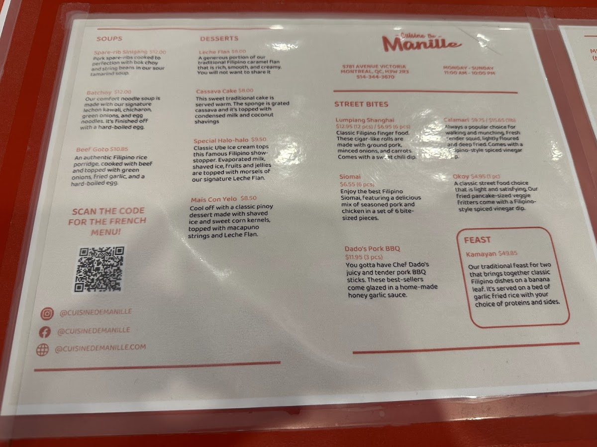 Cuisine De Manille Menu